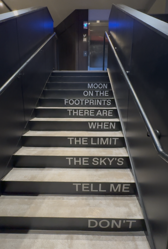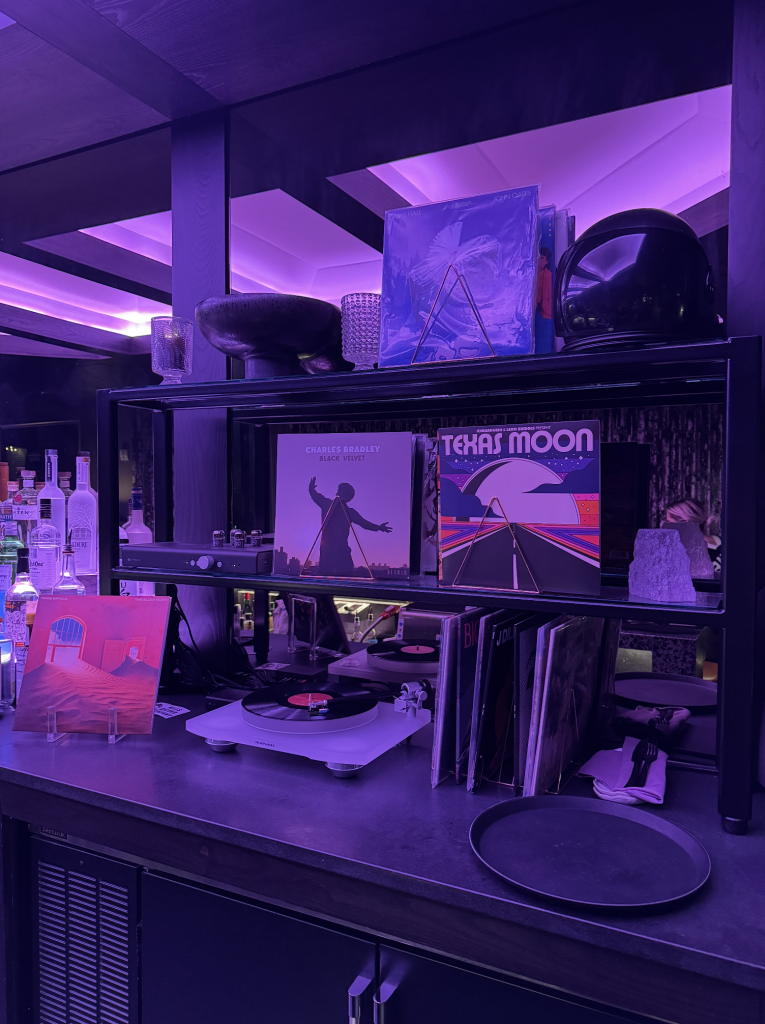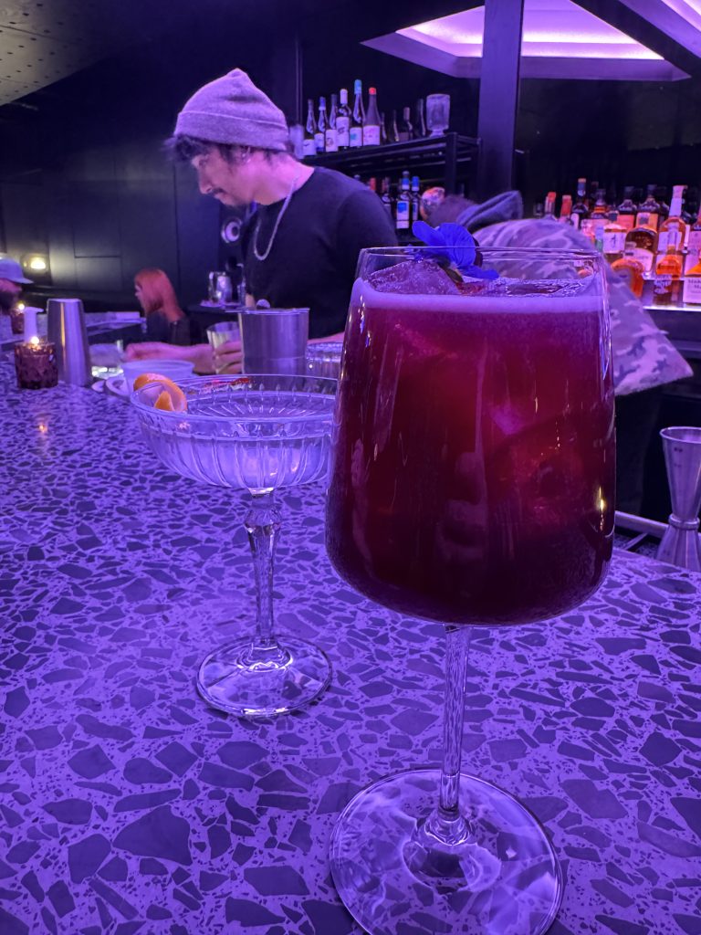 Walking into the lounge you’re hit with swanky, artistic vibes from the get-go. A picturesque quote awaits you on the stairs as you enter, Turkish velvet bar stools sparkle in the opulent lighting accompanied by the sound of freshly spinning vinyls that might just happen to be your favorite Tame Impala album, transporting you back to your last pre-Covid family vacation when it was released, followed by Khruangbin (this place has musical TASTE).