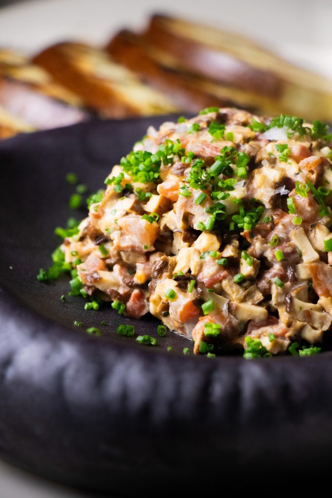 So yes, order the smoked tomato and mushroom tartare and celery root steak.
